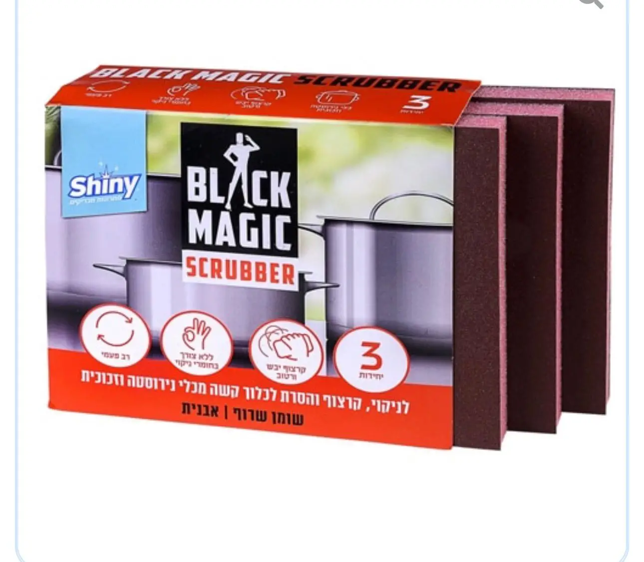 כרית הברקה וקרצוף בלאק מג'יק לנירוסטה מבית Shiny. מנקה ומבריק במהירות ובקלות מוצרי נירוסטה. מסיר לכלוך ושומן שרוף. ללא צורך בחומרי ניקוי. לשימוש רב פעמי.